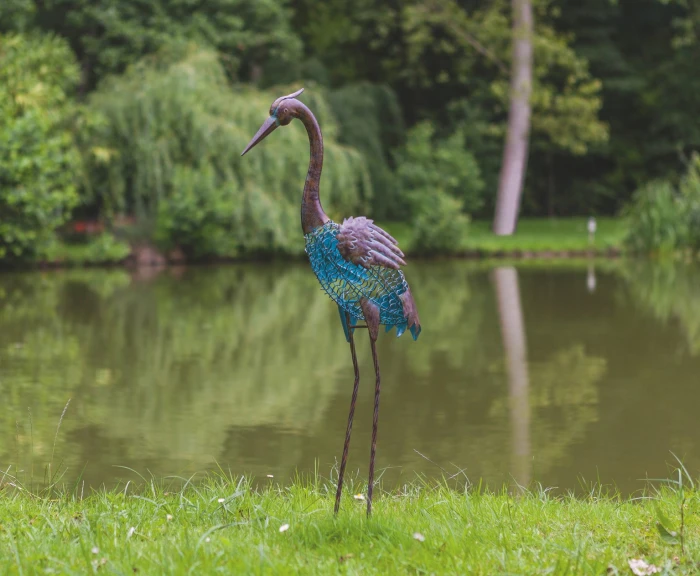 Le Héron décoratif en métal est à positionner dans le jardin, à proximité d’un point d’eau.